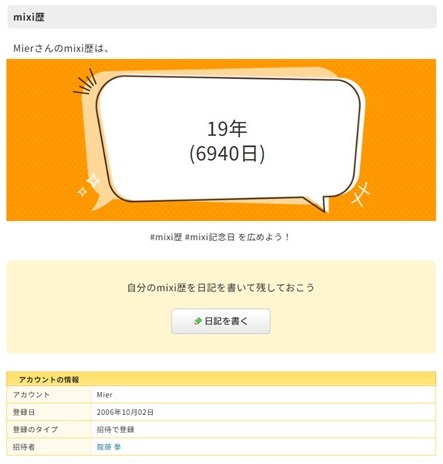 僕の場合、2006年10月にマイミクの龍藤拳さんに招待してもらって