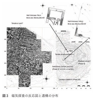 物理探査、磁気探査を行い、神殿のような遺構を発見し、水に浸かりそうな