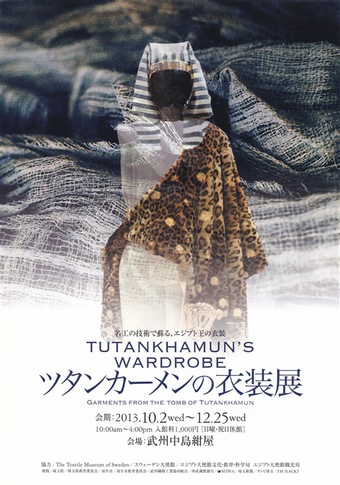 今回の展示会ですが、復元されたツタンカーメン王の衣類、衣装が13点