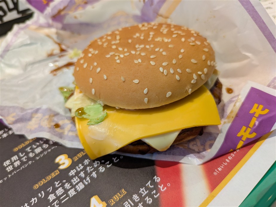 「チーチーてりやき(チーズチーズてりやきマックバーガー)」。